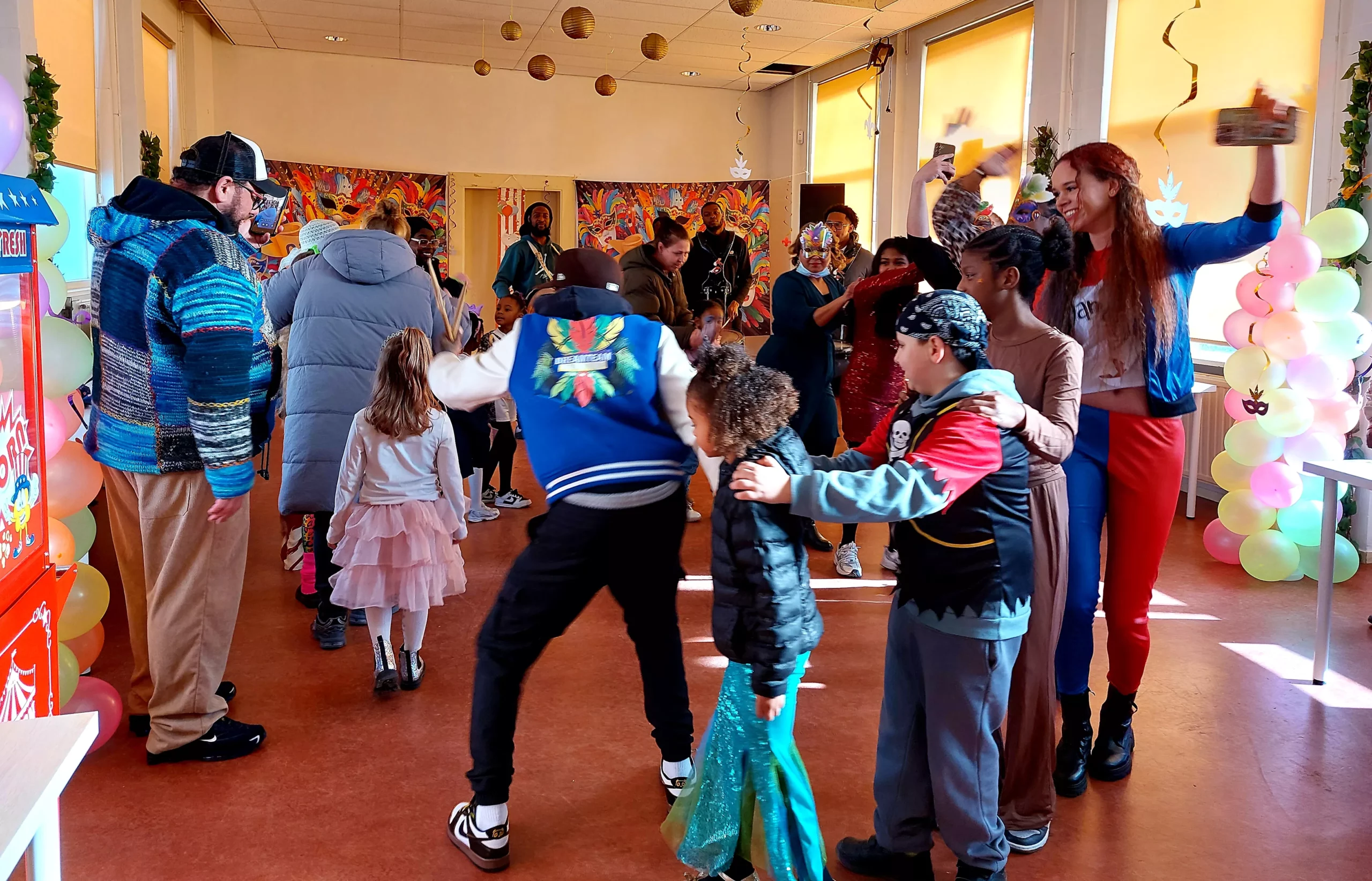 上周六,2月14日,儿童狂欢节在Charlois游乐场协会举行。由Whatever基金会联合Kunst en Vliegfabriek Charlois、Dreampress、Charlois游乐场协会及一些社区居民共同组织。庆典由铜管乐队开场,随后变成了一个充满DJ音乐的欢乐场所。小丑Docus带来了额外的乐趣,为孩子们制作了可爱的气球造型。