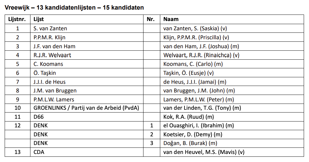 Wie zijn er verkiesbaar voor de wijkraad in Vreewijk?
