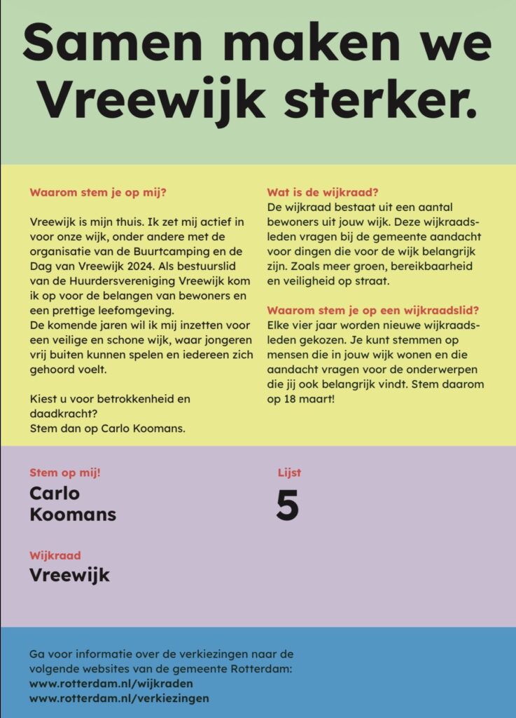 Stem op 18 maart op mij voor de wijkraad van Vreewijk – samen maken we onze wijk sterker’