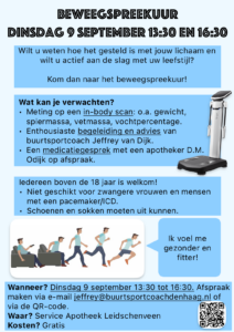Wilt u weten hoe het gesteld is met uw lichaam en wilt u actief aan de slag met uw leeftijd? Kom dan naar het beweegspreekuur!